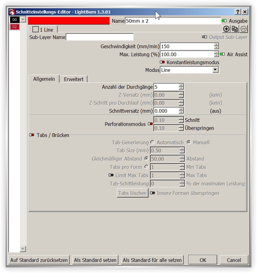 So erstellen Sie schnell eine neue Ebene in Lightburn