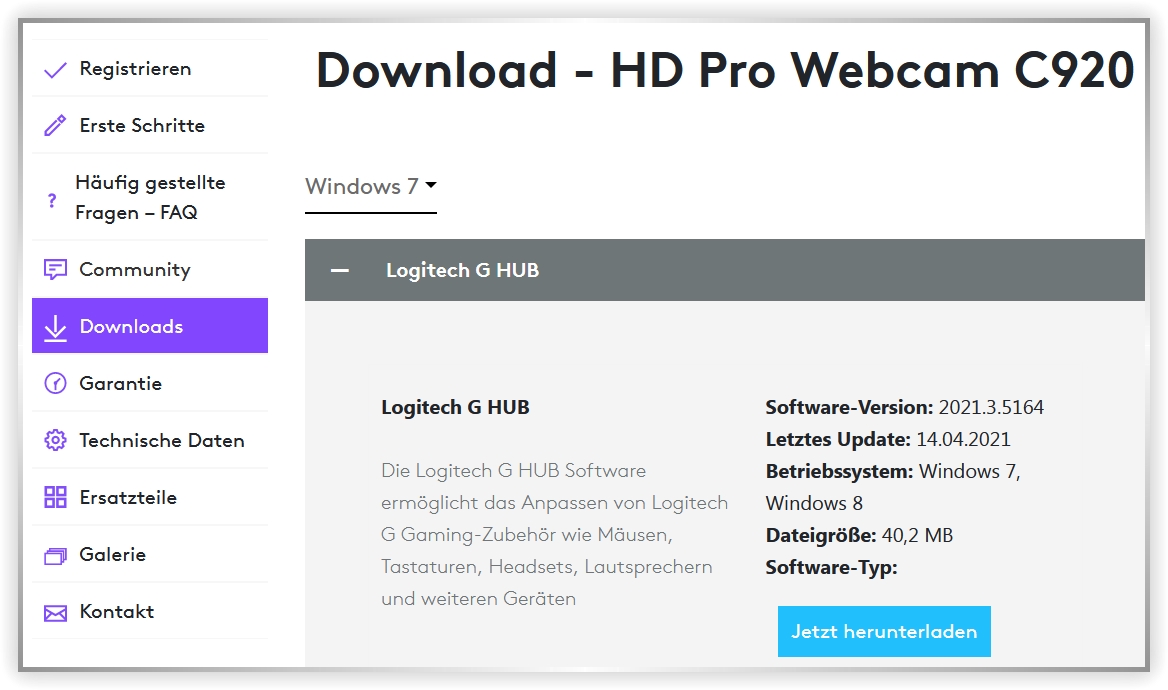 Probleme mit Logitech Webcam PRO HD C920 unter Windows 7